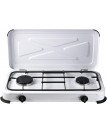 Pratico fornello a gas da campeggio provvisto di coperchio per facilitare il trasporto e favorirne l\'utilizzo all\'aperto: il coperchio funge da schermo protettivo in caso di vento.