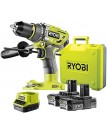 Trapano a percussione Ryobi R18PD7-220B, un modello a batteria da 18V con motore brushless. Questo prodotto è venduto in un kit che include il trapano, due batterie al litio da 2.0Ah, un caricabatterie e una valigetta per il trasporto.